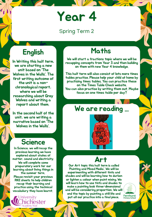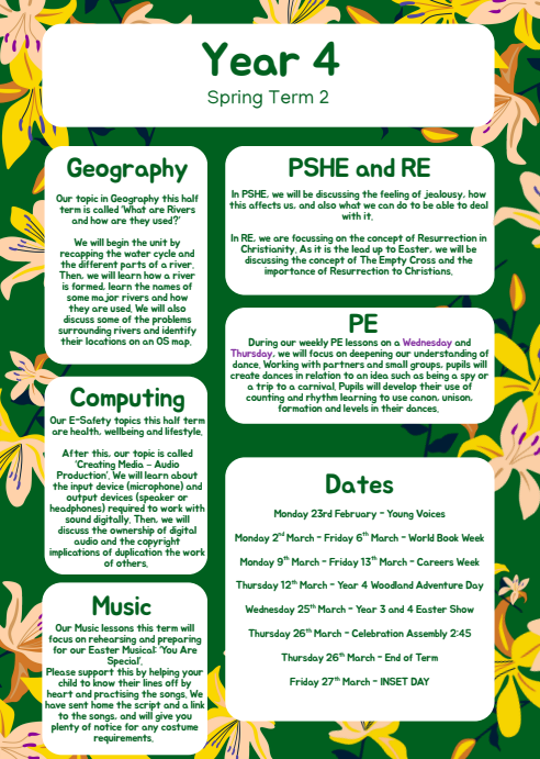I hope you all had a restful half-term. We have a jam-packed second half of our Spring Term, as it is such a short one. With only 5 weeks, we need to complete our curriculum whilst rehearsing for our Year 3&4 production – 'You Are Special'. We are very excited for parents to come and watch it on Wednesday 25th March at 2pm.