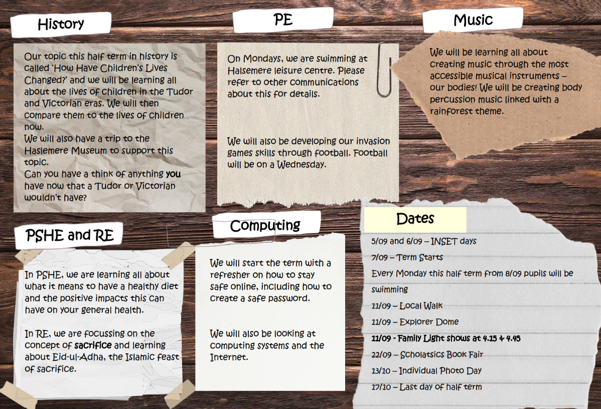 Our PE days this half term will be Mondays (Swimming) and Wednesdays (Football).